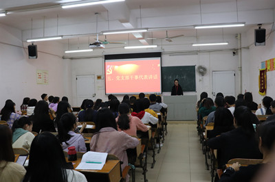 大会上,学生党支部干事张莹莹发言。她表示,有责任、有担当,是当下对党员考核的重要标准,体现的是对个人、社会的责任。在座的入党积极分子们要勇于担当,直面初心,迎难而上,践行初心。践行初心并不是口头功夫,而是要践行于行动。“一分部署,九分落实”无论工作是多是少,是难是易,都要保持一颗实干,苦干的决心,每一项工作都要细致且严格执行。
