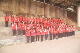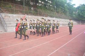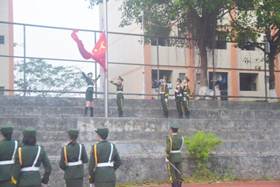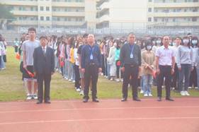 国旗护卫队迈着铿锵有力的步伐,昂首阔步护卫国旗来到升旗台前。在场师生齐声高唱《义勇军进行曲》,面向国旗行注目礼,对伟大祖国致以崇高的敬意和美好的祝福。在雄壮的国歌声中,鲜艳的五星红旗冉冉升起,伴着清晨的阳光迎风飘扬。