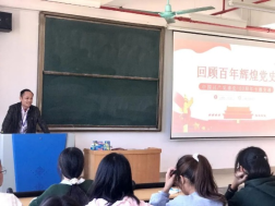 谭玉清书记以“回顾百年辉煌党史”为主题,结合自身研究成果向入党积极分子们讲述中国共产党的诞生、发展与壮大过程。他带领同学们回忆中国共产党诞生的背景与历程并指出共产党的诞生具有历史的必然性,为增强说服力,他同时列举许多史实来佐证自己的观点。