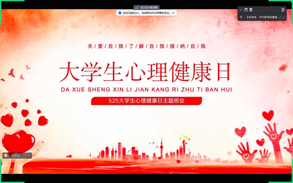 为加强心理健康教育,增强同学们的心理健康意识,培养积极健康的心态,williamhill英国官网于5月26日晚通过线上线下相结合的方式开展“大学生心理健康”主题班会。我院学生积极参加。