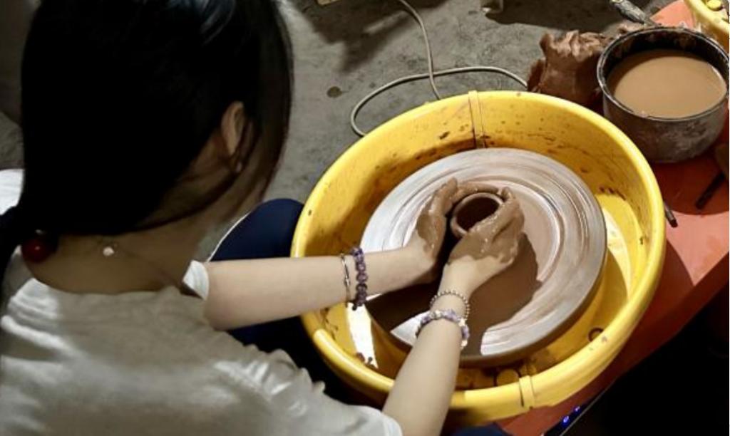 7月9日下午,由连缓老师带队,党的小朝阳队的六位成员共同奔赴位于潮汕潮安区的应山陶艺坊。团队采访了两位手拉壶非遗传承人,并尝试亲手制作手拉壶,近距离观赏手拉壶和与了解手拉壶的历史。