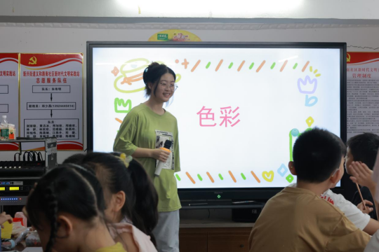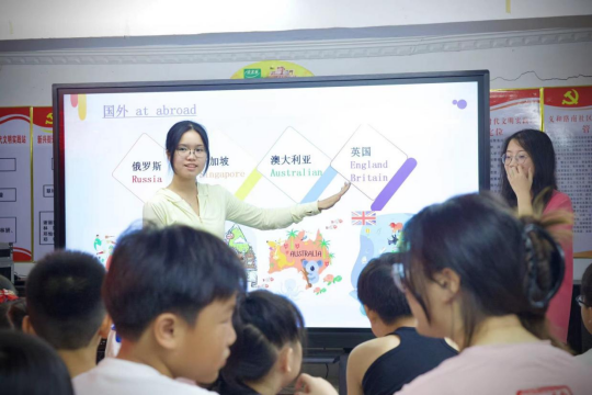 为激发孩子对英语学习的兴趣,培养初步的语言感知能力。7月8日,梦华之队成员廖洪平、赖炫秀、向佳鑫为孩子们带来了以“Do you want to travel?”为主题的英语课。她们用形象有趣的英语儿歌引入课堂,吸引学生注意力。课堂上,生动的讲解和循序渐进的课堂互动,让孩子们在轻松愉快的氛围中学习了不同国家,不同物品和活动的英文单词与基本句型。梦华之队成员们还设计了简单的对话练习,鼓励孩子们大胆开口说英语,激发了他们对英语学习的浓厚兴趣。开展英语课激发了孩子们学习兴趣,增强语言敏感度,为他们打下了坚实的英语基础。