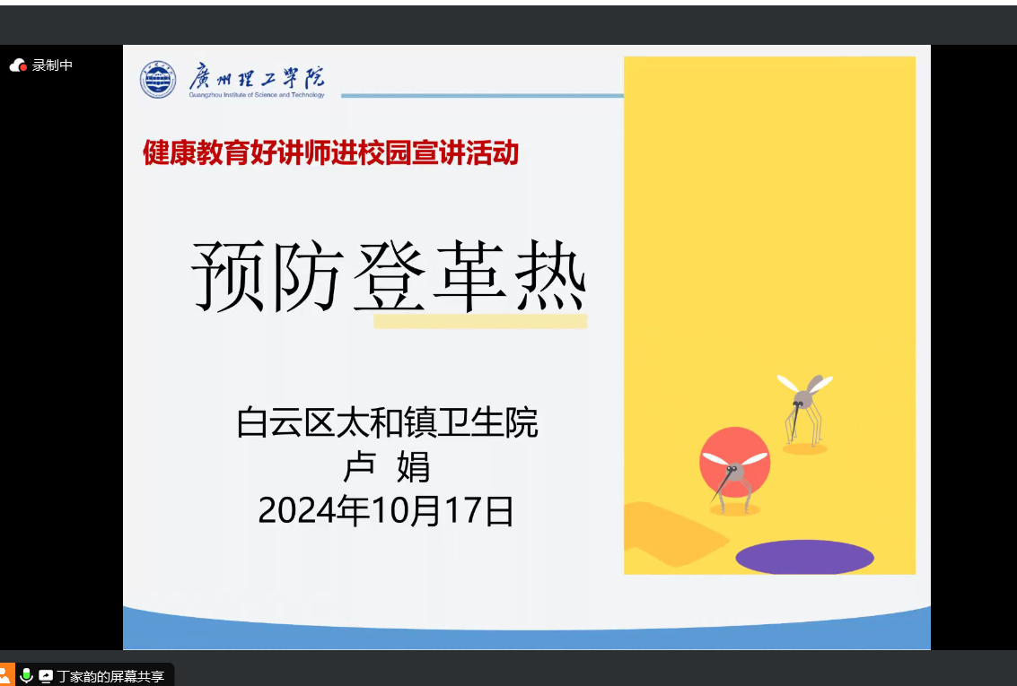 为引导同学们充分了解登革热,并采取有效的预防措施,确保自身健康,williamhill英国官网于10月27日晚通过线上线下相结合的形式开展了预防登革热教育主题班会。我院全体学生参加此次班会。