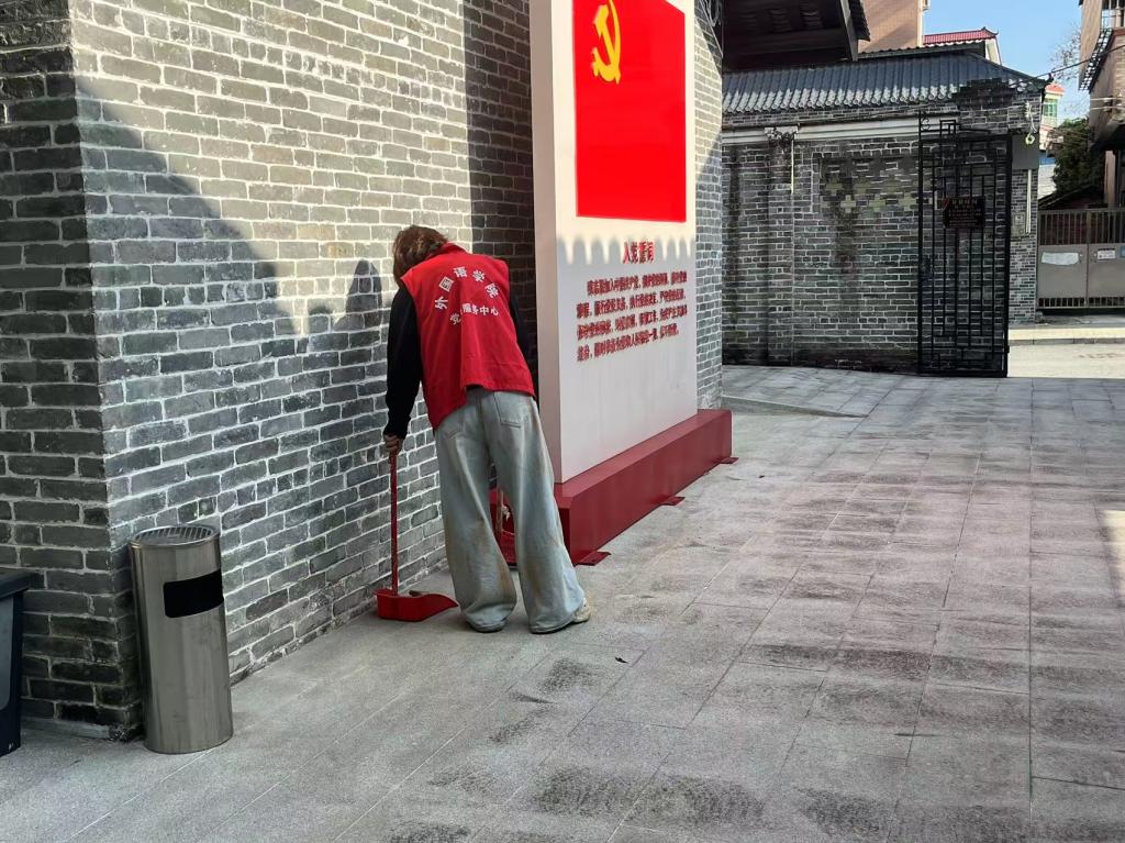 活动过程中,志愿者们将个人物品依次摆放整齐,穿上红色志愿马甲,有序地开展清洁工作。他们分工明确,相互配合,手持清洁工具,对场馆内外的基础设施进行了全面的打扫,不放过任何一个卫生死角。此外,志愿者们还细心地将场馆内的桌椅板凳摆放整齐,为游客提供了一个更加整洁和舒适的参观环境。