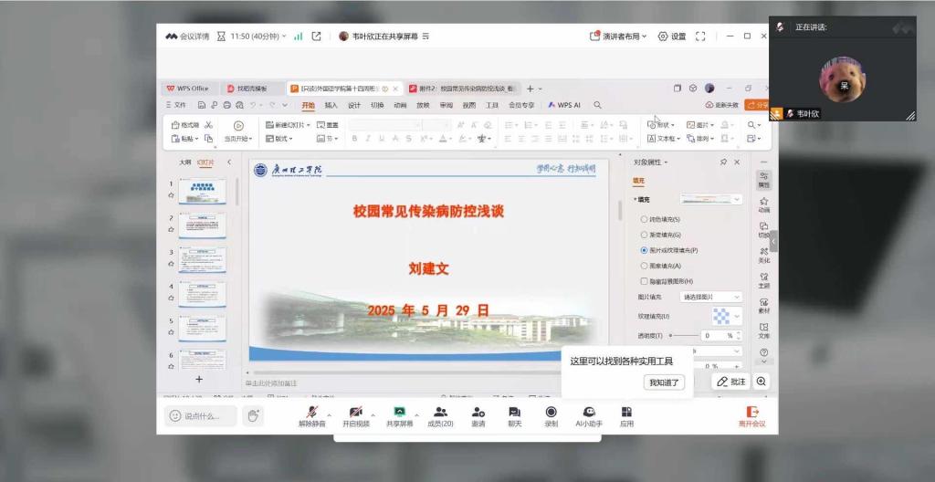 为提高学生健康意识,普及传染病预防知识,增强集体防护能力,共同维护校园健康安全环境,williamhill英国官网于6月2日晚开展了传染病防控主题班会。我院学生积极参加此次班会。