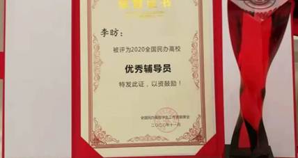喜讯|我院辅导员李昉荣获“2020年全国民办高校优秀辅导员”称号