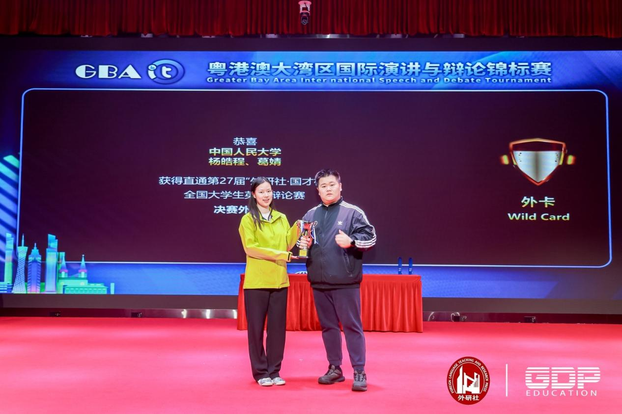 本次锦标赛特别设置1张直通第27届“外研社·国才杯”全国大学生英语辩论赛决赛的外卡,为青年辩手提供了通往国家级赛事的宝贵通道。外卡获得者需满足“同一院校全日制在校生”且“决赛队伍无变更”等条件。这一机制不仅激励了选手们的竞技热情,更推动了粤港澳大湾区高校间的学术交流与合作。