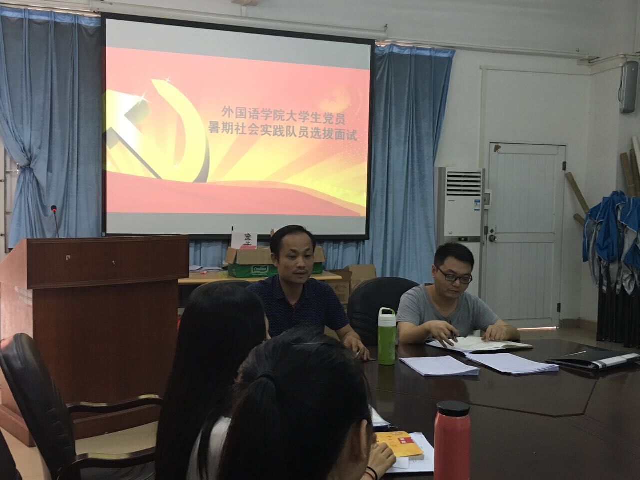 6月23日下午,我院于7栋313会议室举行大学生党员暑期社会实践队员选拔面试,我院党总支书记谭玉清老师,学生第二党支部书记寇进老师担任此次面试评委。候选人以学生党员和预备党员为主。