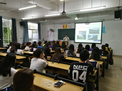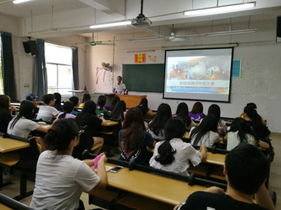 谭书记结合学生所学专业及未来就业方向,全面深入多方位地阐述了“一带一路”国家战略的提出背景、内涵、意义、语言战略构建及“一带一路”建设对国内、国际的巨大影响,他的授课内容丰富,图文并茂,数据详实,语言生动鲜活,风趣幽默,不时将一些中文词汇翻译成英文,与学生进行“一带一路”知识点和中英互译的互动,让学生们在寓教于乐中感受自身所学专业在“一带一路”战略实践中的价值。谭书记的讲座师生互动热烈,氛围活跃。