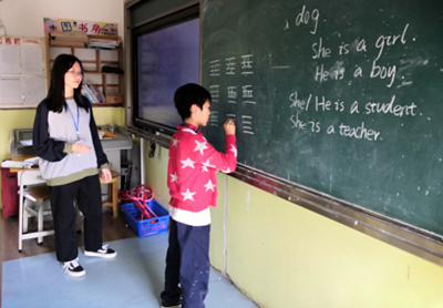 课堂上,为鼓励孩子们开口说英语,调动他们学习英语的兴趣,志愿者老师们采用游戏的方式让大家来灵活运用英语,孩子们积极主动参加游戏。游戏既让孩子们玩得不亦乐乎,也让英语知识变得生动形象起来,使整个课堂营造出浓厚的学习氛围。