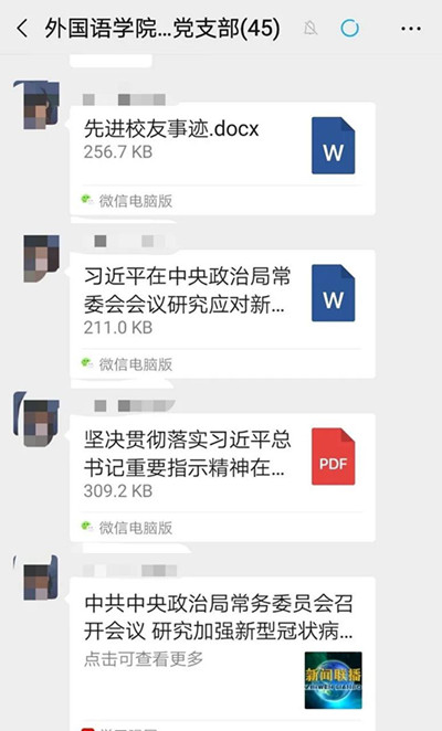 会上,陈泽琪同志、王华变同志分别带领党员同志学习了关于习近平总书记重要指示精神、在打赢疫情防控阻击战中积极主动履职有效发挥作用的相关文件、以及关于优秀校友张轩源在疫情防控中勇赴前线的先进事迹,并且一同观看了视频《习近平主持中央政治局常委会会议研究加强疫情防控工作》。