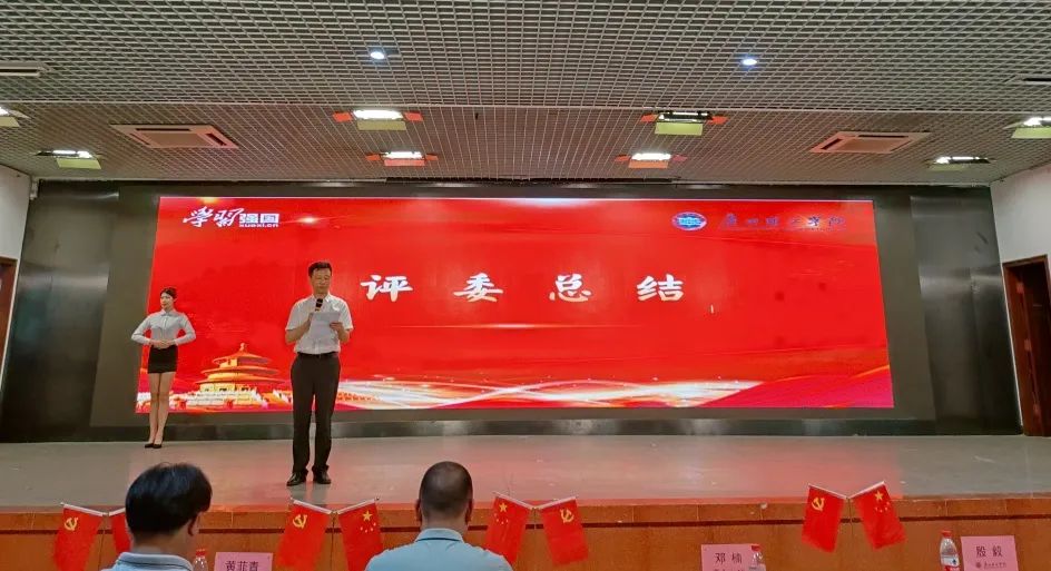 纪委办公室主任、马院党总支书记邓楠做点评,对参赛选手们“述心中所想,展家国情怀”表示赞扬,鼓励广大党员干部起先锋模范带头作用,鼓励同学们养成良好的学习习惯。