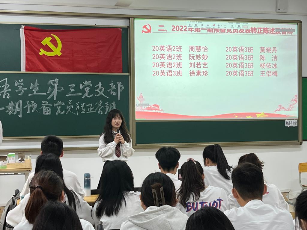 随后,学生党支部干事希望预备党员牢记申请入党时的决心和誓言,永远保持先进性,坚定立场,坚持学习永不懈怠。行动是思想的代表,日后无论是在学习还是在工作中,都要继续保持积极主动、吃苦耐劳的精神,时刻起到党员的先锋模范作用,不断用行动锤炼党性,踔厉奋发,奋勇前进。