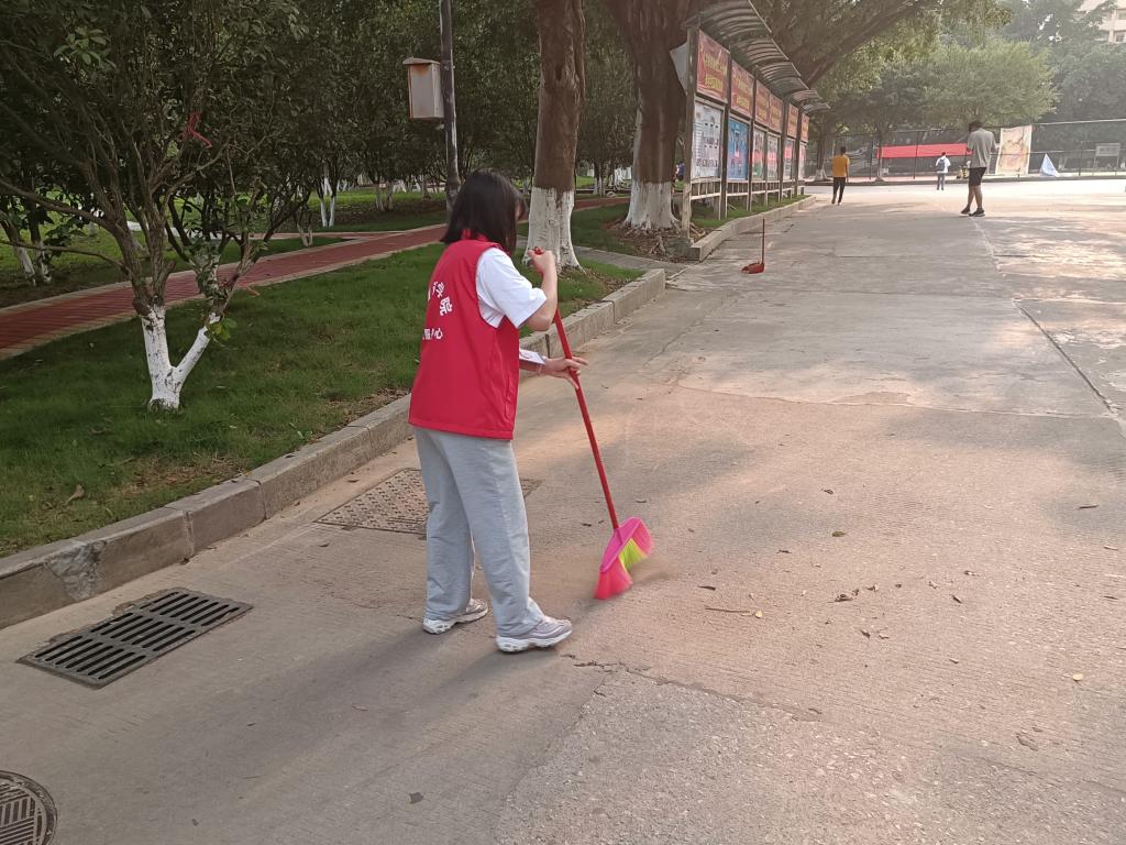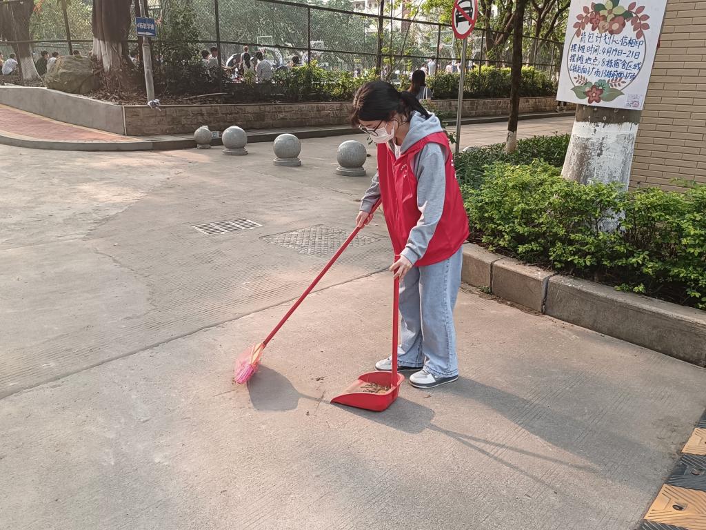 校道上,志愿者们手拿清扫工具,各司其职,各尽其责,一丝不苟地清扫各个角落,针对责任片区的卫生死角、垃圾点及垃圾桶进行重点清理,对校道的各类残枝断树、垃圾落叶等堆积物进行集中清理。活动过程中,大家分工明确,行动有条不紊,“走一路,扫一路”,不放过任何卫生死角,不错过任何校园垃圾,我院志愿者以不嫌脏、不怕累的精神投身于校道清扫活动中。