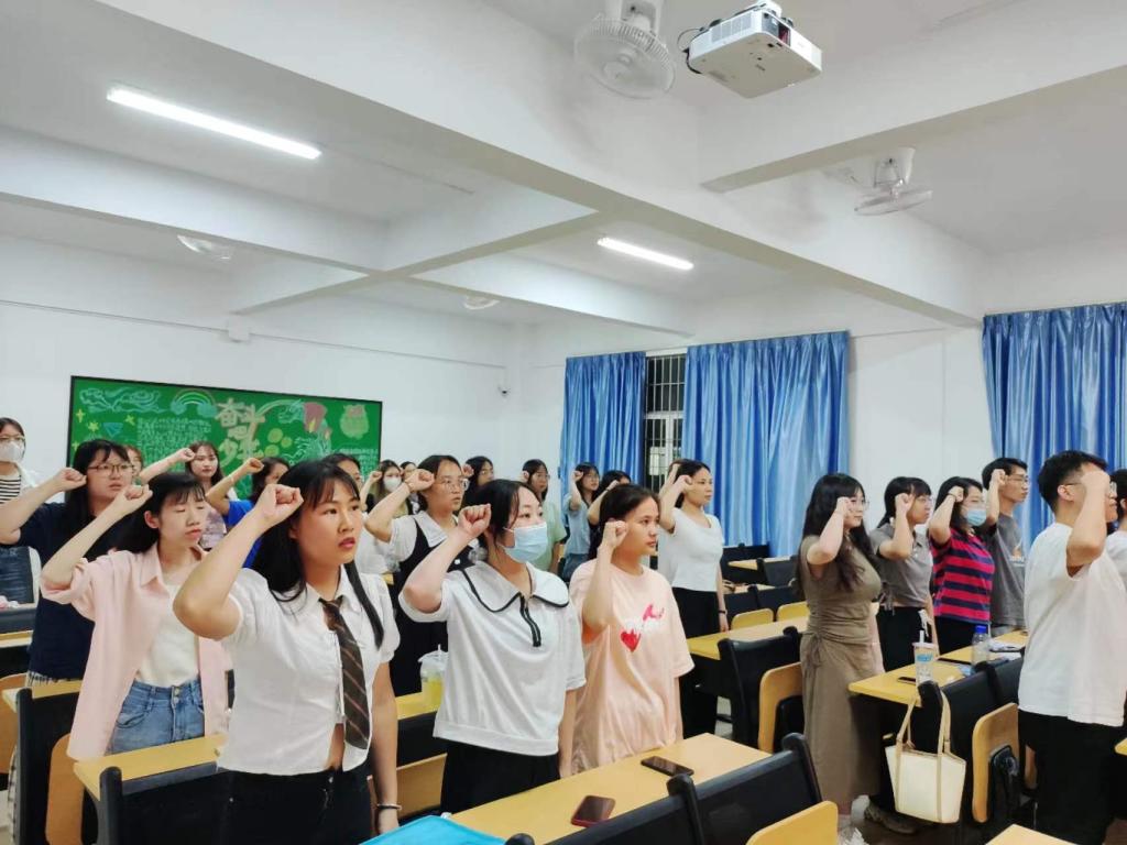最后,全体毕业生党员在袁琳琳老师的带领下,高举右拳,在离校前再次重温入党誓词。这让毕业生党员进一步深刻认识了所肩负的光荣责任和使命,并始终牢记党的宗旨和奋斗目标。