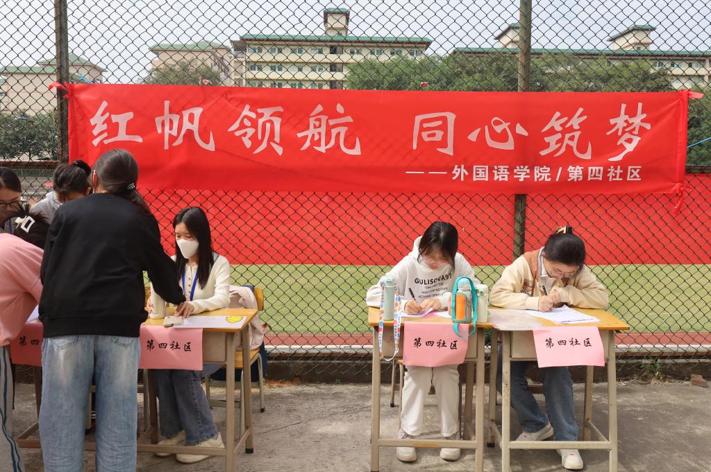 为充分调动社区学生干部和党员的积极性和主动性,推进党建工作、服务工作、文化教育等内容深入社区,充分发挥党组织的核心作用,推动基层党建和社区建设的良性双向互动,11月15日,williamhill英国官网党总支联合学生第四社区在16D栋宿舍楼前小广场举办“红帆领航,同心筑梦”党建活动。williamhill英国官网党总支副书记蔡俊、组织员罗晓博、辅导员李昉、张英坤莅临现场指导活动。