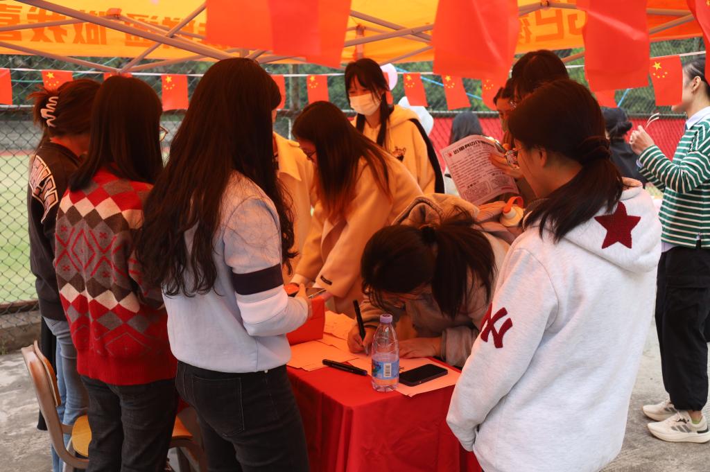 本次活动由五个环节组成,分别是走访宿舍、社区党员服务站、传单宣传、党史知识“你画我猜”小游戏、“强国有我”外文书法大赛。