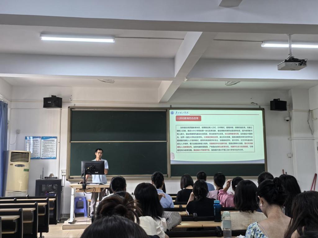 会议伊始,冉书记详细阐述了党的二十届三中全会上提出的关于教育改革的内容,让教工党员们对国家在教育领域的新一轮改革中实行的各项决定有了全新认识和定位。