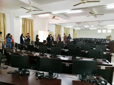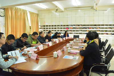 ,考察团来到广东海洋大学寸金学院,受到黄育芹副院长热烈欢迎。黄副院长介绍了寸金学院的办学基本情况、专业设置与特色以及对外交流情况,欢迎两校进一步加强交流,分享经验,共同提高;寸金学院外语系副主任林海明详细介绍了外语系概况、专业及课程建设、人才培养方案设置。该校外语系以“明德笃学、会通中外”为系训,积极为学生提供专业锻炼平台,确保每个专业至少有四个以上对口的校外实习基地,通过大量的专业实习实操,提高学生的专业应用能力。宾主双方就学生实践能力锻炼、学生管理、当今外语教学形势等进行了探讨。座谈会结束后,一行人在外语系普映山主任的带领下参观了设备先进的同传室。