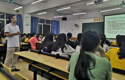 冉主任从生活角度和学科等角度向新生介绍了外语专业的重要性。根据新生对专业课程了解不足的情况下,他介绍了英语专业与翻译专业的相关课程,并从中点明了各个课程的核心要点,以让新生能对自己的专业有一定的把握。为了给新生更好的学业指导,他对外语专业生提出了数点学习建议,且进一步地从各个角度讲解素质要求、知识要求、能力要求对外语专业生的关键性。他表示在大学的学习中最重要的并非是得到知识,而是改变学习、思维方式,在学习的过程中构建知识体系。此外,还要学会透过现象看本质,不断追根溯源,培养批判式思维。