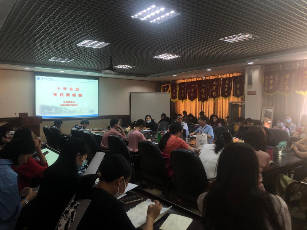 10月13日下午,为进一步加强学院建设,展示新风貌,我院召开“十年奋进,学校展新貌”专题会议。教职工专场及班会分别由田祥斌院长和各班辅导员主持,学院全体师生参与。