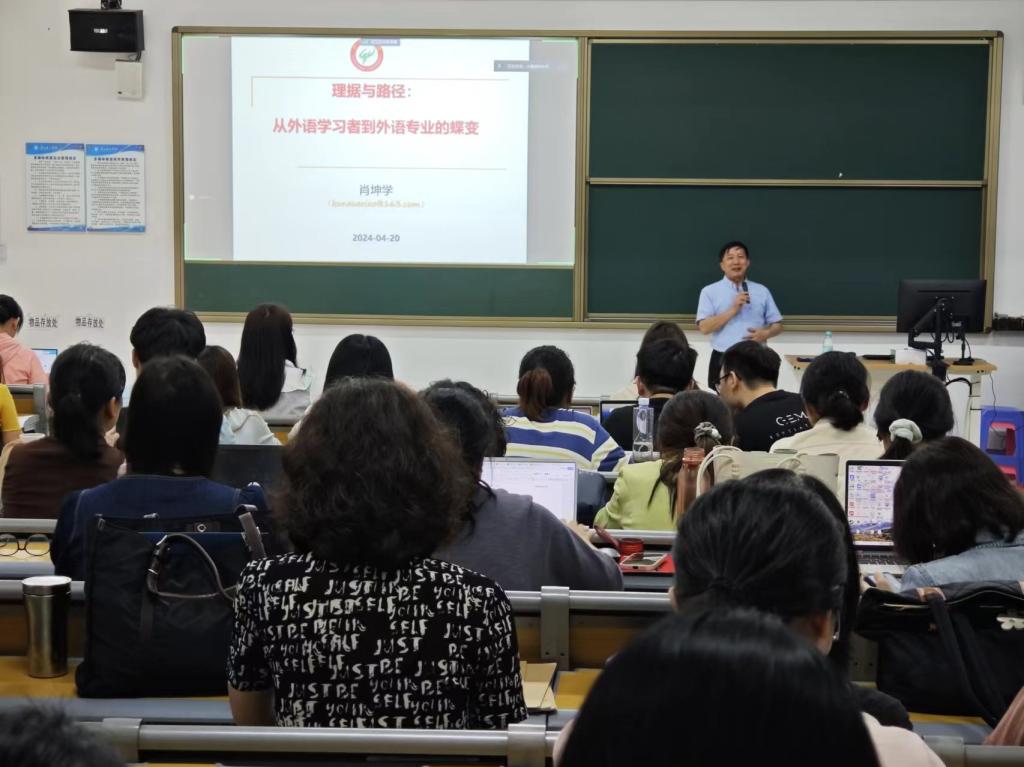 为拓宽学术视野,提升专业素养,4月22日下午14:30,williamhill英国官网在6栋103举办了题为“理据与路径:从外语学习者到外语专业的蝶变”的学术讲座,本次讲座由广州大学williamhill英国官网肖坤学教授主讲,williamhill英国官网全体老师参加。
