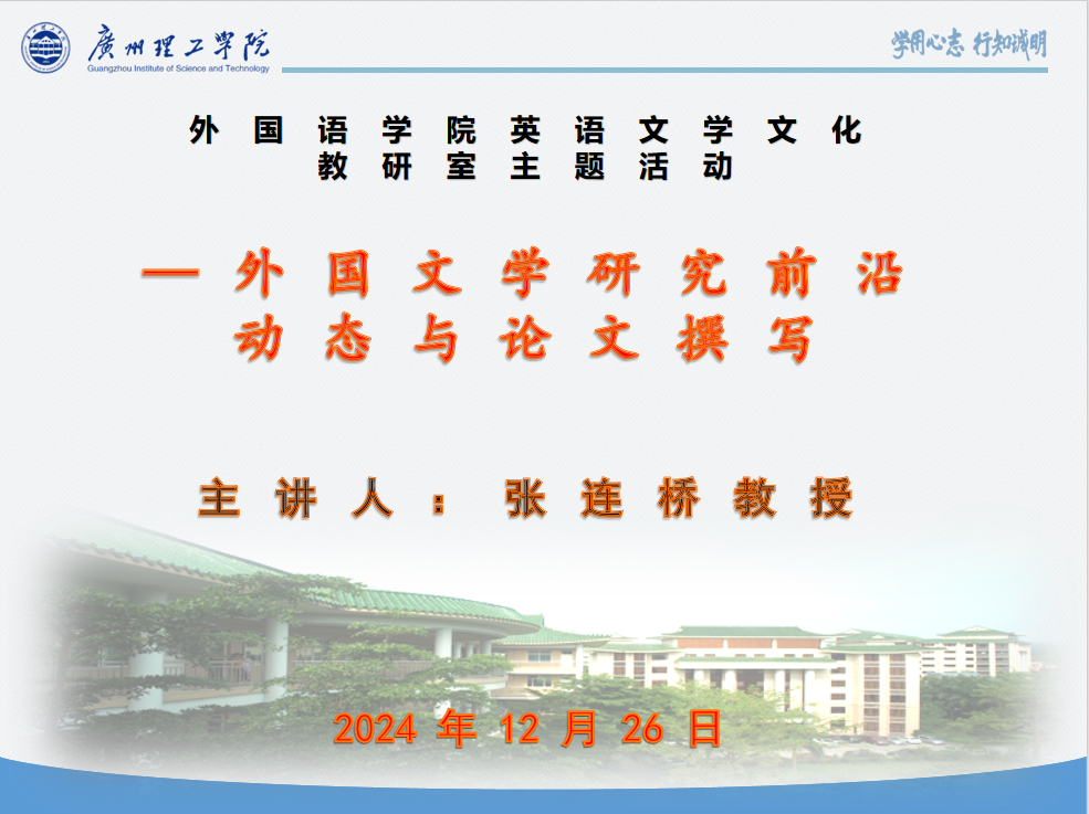 12月26日19:30,英语文学文化教研室举行了以“外国文学研究前沿动态与论文撰写”为主题的线上研讨会。广州大学人文学院教授张连桥担任主讲嘉宾。会议由教研室负责人、williamhill英国官网副院长冯军霞主持。教研室教师参会。