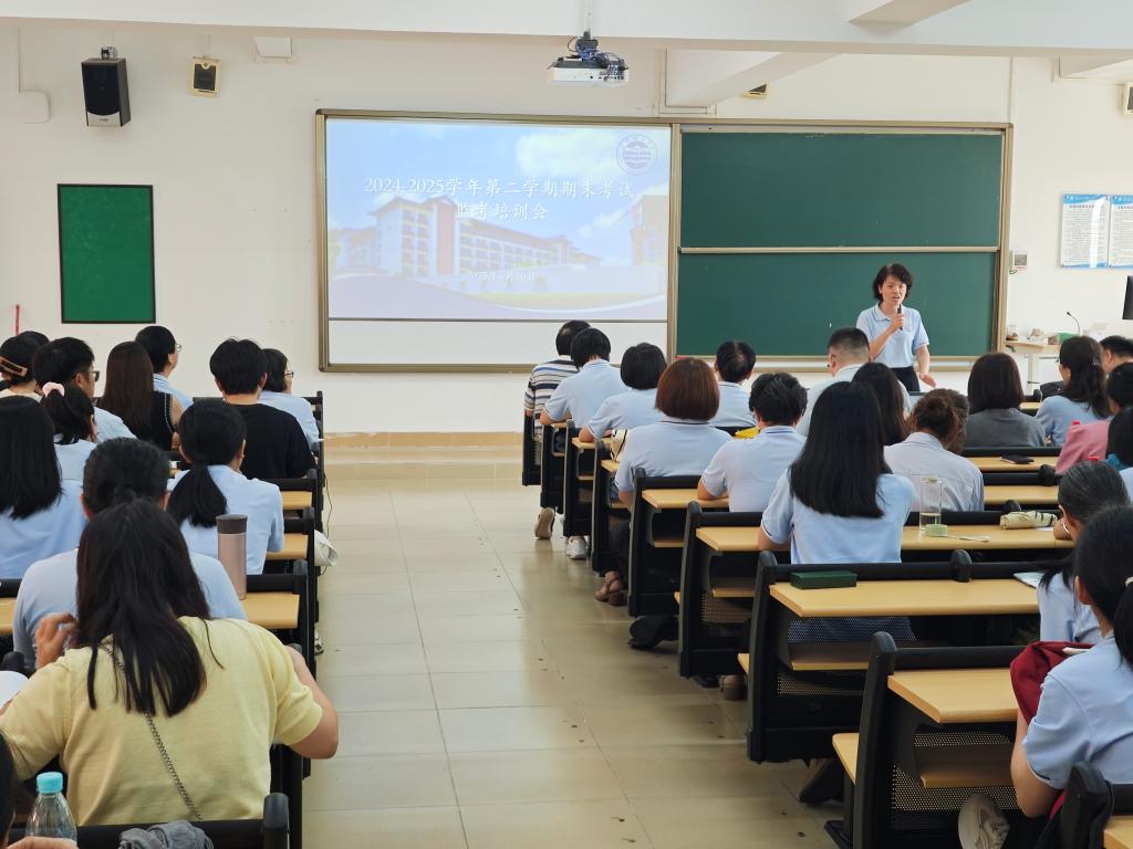 会议尾声,教务干事郭木英老师开展期末考试监考专题培训。她围绕考前、考中、考后、阅卷及试卷归档全流程,进行系统性、精细化讲解。考前,强调规范领取试卷流程,仔细检查考场设备;考中,要求监考教师严守纪律红线,以零容忍态度维护考试公平公正;考后,需认真清点试卷,严格按规范封装;阅卷环节,明确评分细则与复核流程;试卷归档阶段,细化装订顺序、材料清单等具体要求。此次培训以清晰的流程指引和严格的标准要求,为期末考试平稳有序开展筑牢安全防线。