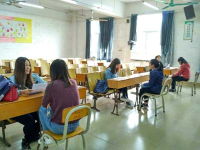 会上,面试官介绍了本次招聘的职位、要求、以及面试形式。正式面试以一对一的形式进行,三位面试官分别对面试者进行面试。面试者进行简短的自我介绍后,在规定时间内准备面试官所给出的话题,随后全程用英语作答。面试官从与面试者的对话交谈中了解面试者的基本英语功底以及英语口语能力,从而作为挑选的标准。面试者们精神饱满,面试过程中充满自信与激情。