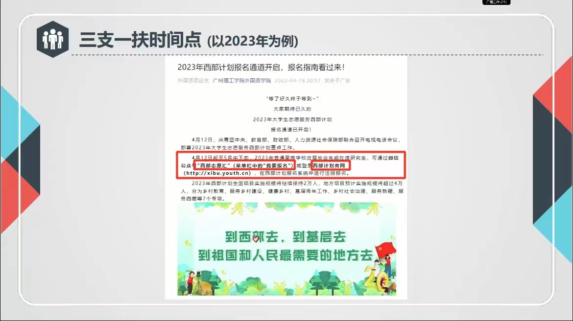 随后,许娟娟老师介绍了基层就业渠道,为同学们讲解了西部计划、三支一扶等方面的就业信息和政策。此外,许老师还围绕毕业生实习材料的填写和上交要求、毕业时间节点、就业协议书以及就业信息填报流程等方面做了详尽的讲解,并提醒同学们要全面了解相关要求,在求职过程中要对合同加以重视,妥善处理和保管好自己的三方协议,保持良好的求职安全意识。会议最后,老师们对同学们提出的疑问进行了解答。