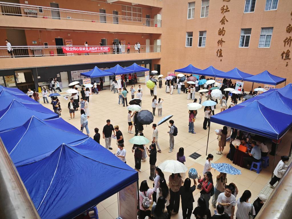 本次供需见面会活动迎来了众多带着丰富岗位资源的招聘单位,涵盖了教育、外贸、翻译、跨境电商等多个与外国语专业紧密相关的行业领域。活动现场气氛热烈,我院学子穿梭于各个展位之间,手持精心准备的简历,自信地与招聘人员交流,向招聘人员展示自己的能力和潜力,并认真询问他们有关岗位要求、薪资待遇、企业文化等方面的问题。