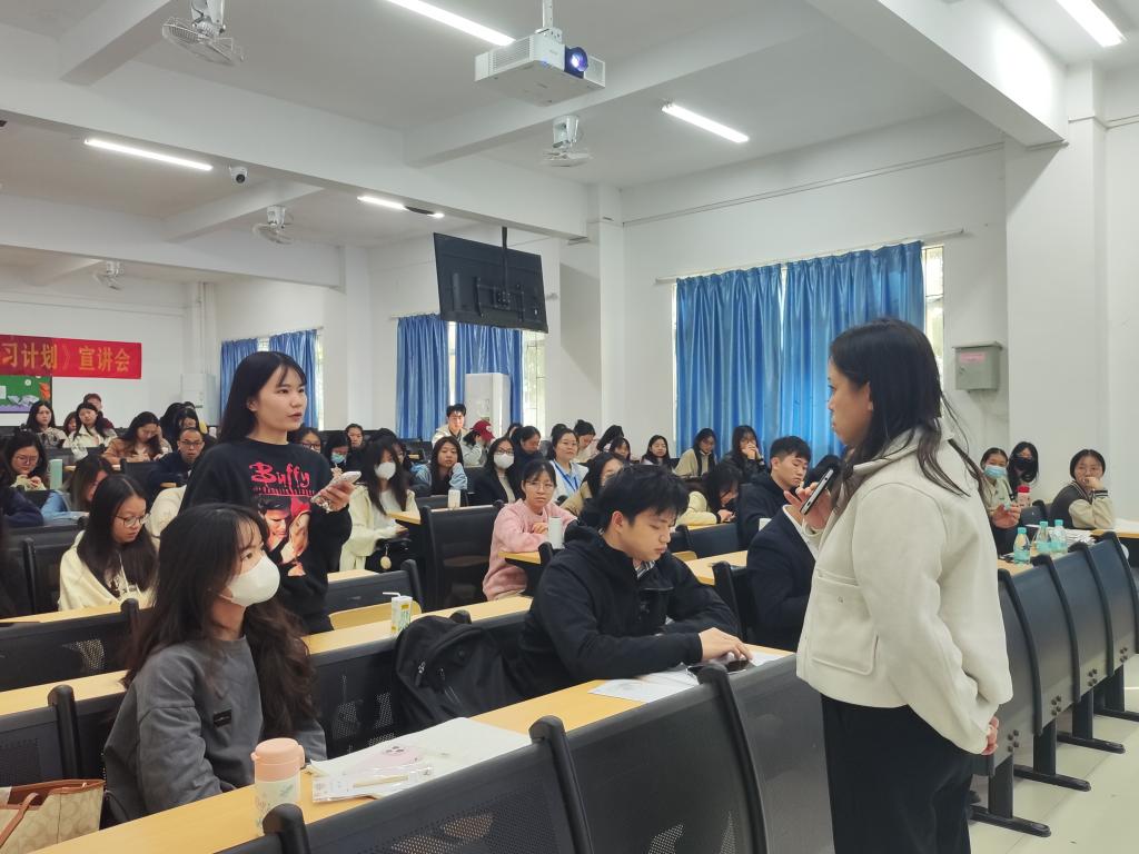 会上,麦经理通过宣传片,让同学们初步了解了香港国际航空学院培训中心,感受到了培训中心实习生的成长与变化。接着,她围绕培训中心的成果、实习内容、申请条件以及实习时间线展开说明,涵盖了签证申请流程、实习就业机会、生活成本、文化适应等关键信息。此外,麦经理还为同学们提供了最新的政策解读和实用指导。