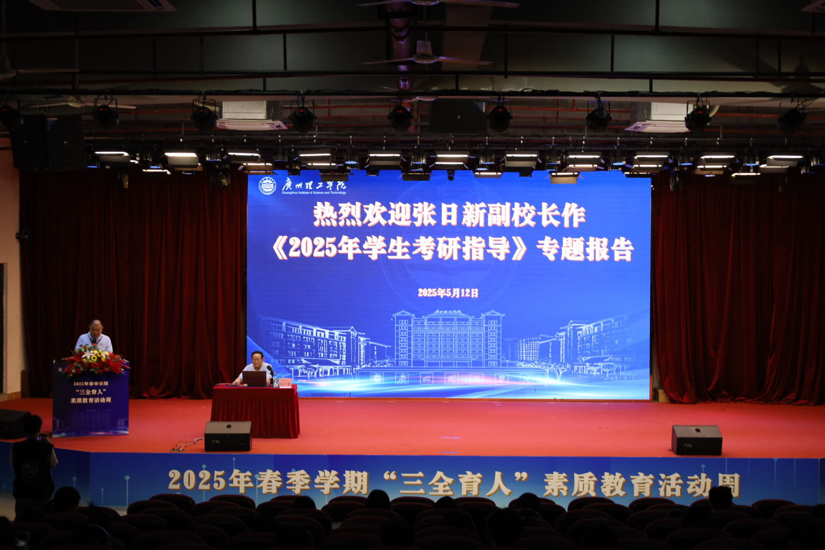 会上,张日新副校长从各国研究生比例、国家教育强国发展战略、自我价值体现、读研路径选择四个维度来分析考研的情况。首先,张日新副校长以各国研究生比例数据为切入点,指出在知识经济时代,高层次人才对国家发展的重要性。其次,结合国家教育强国发展战略,张日新副校长进一步强调,国家对研究生教育的重视程度不断提升。目前,国家层面在政策支持、资源投入等方面持续发力,这为广大考研学子创造了良好的外部环境,也意味着同学们通过考研能够获得更多优质的教育资源和发展机遇。接着,张日新副校长结合自身经历,讲述考研对职业转型和个人志向实现的意义,鼓励同学们通过读研提升学术研究能力。最后,在路径选择方面,张日新副校长对比国内外培养模式,鼓励同学们根据自己的兴趣进行选择。针对备考,他建议提前规划,研究考试大纲与真题,依据职业规划选择专业和导师。
