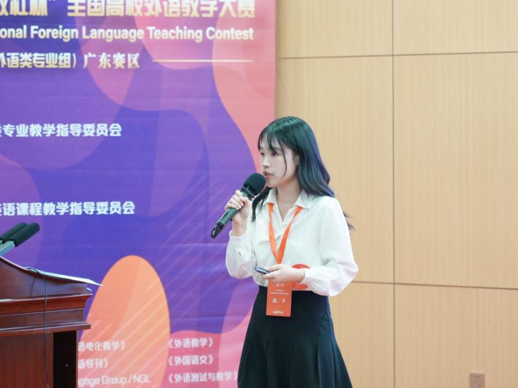 6月22日,由上海外国语大学主办,上海外语教育出版社承办的第十五届“外教社杯”全国高校外语教学大赛(外语类专业组)广东赛区决赛在历经一系列精彩的环节后圆满地落下了帷幕。我院教师江锴诗凭借自己卓越的教学表现和专业的学科素养获得了商英组二等奖的好成绩!