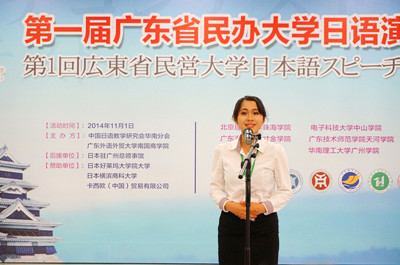广东省民办大学首届日语演讲比赛是为落实广东省2014年“强校工程”工作精神,实现大学间协同创新,资源共享,提高日语专业学科建设水平而举办的一场权威的、专业的日语演讲赛事。本次比赛得到了日本驻广州总领事馆、日本好莱坞大学院大学、日本横滨商科大学、卡西欧公司的鼎力支持。来自广东省12所民办大学的25名日语佼佼者参加了紧张激烈的角逐。选手们扎实的日语功底,流利的口头表达和机智而不失幽默的临场反应,给在场的评委和观众留下了深刻的印象。这是我院第一年参加此类省级的日语演讲赛事,学生和指导老师都得到了很好的锻炼,积累了不少经验,为来年取得更好的成绩打下了坚实基础。