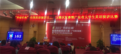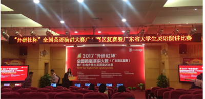 “外研社杯”全国英语演讲大赛于2002年创办,在国内外广受关注,已成为全国参赛人数最多、规模最大、水平最高的英语演讲赛事,与 “外研社杯”全国英语写作大赛、“外研社杯”全国英语阅读大赛统称为“Uchallenge全国大学生英语挑战赛”。本次大赛有来自广东省55所高校的67名选手参赛。比赛分半决赛和决赛两个部分。半决赛采用即兴演讲的形式,15分钟准备,演讲3分钟,选出13名进入决赛。决赛包括定题演讲、即兴演讲和评委提问三个环节。其中定题演讲3分钟、即兴演讲1分钟、回答问题2分钟。
