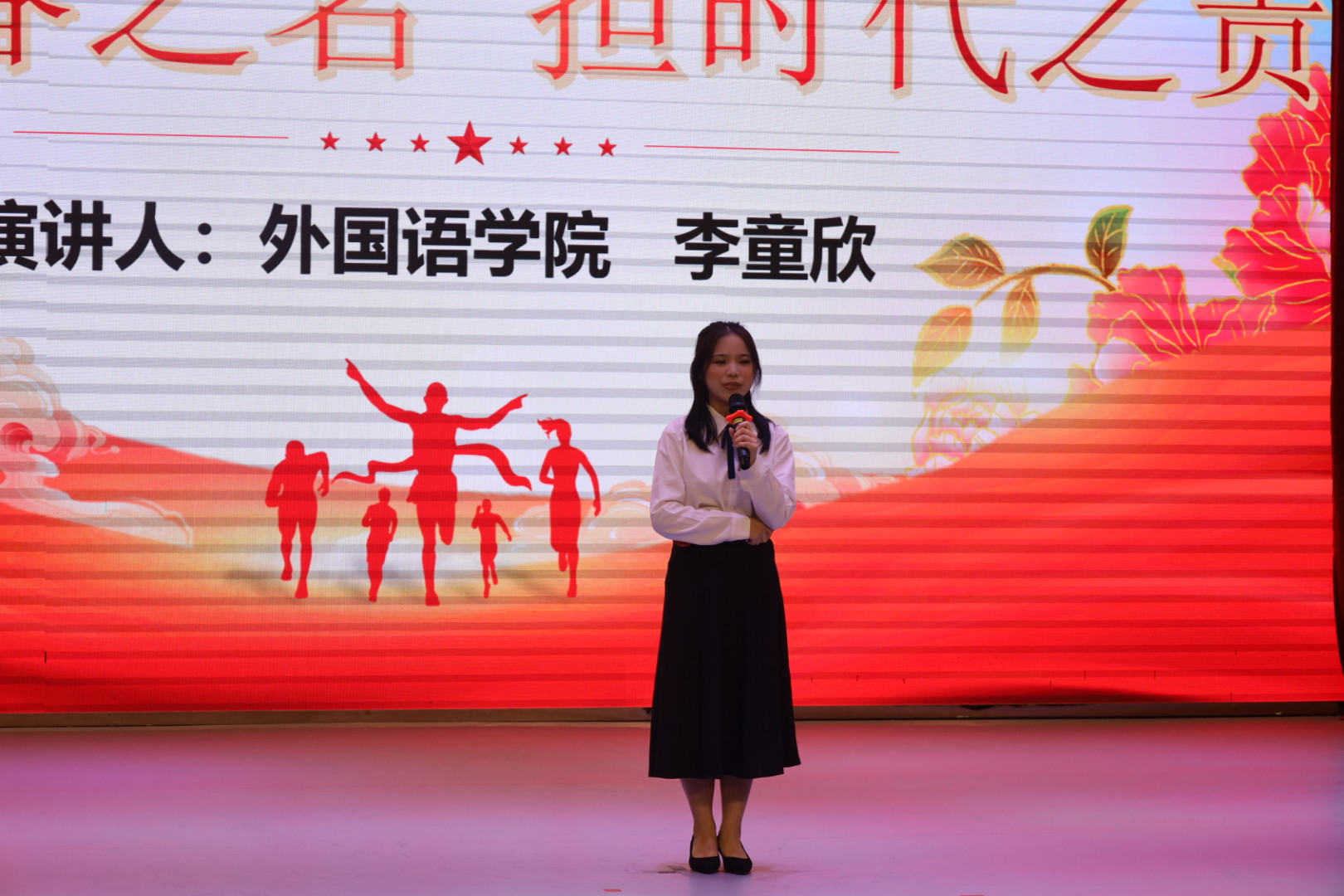 我院选手李童欣以“以青春之名,担时代之责”为题,以北京冬奥会上滑雪运动员苏翊鸣为中国冰雪运动取得了历史性成就为例,向同学们讲述了身为新时代青年的自己是如何在学习生活中发扬奋斗精神,以此激励和号召同学们应当将奋斗融入青春当中,发扬奋斗精神,坚定理想信念,绽放青春精彩。