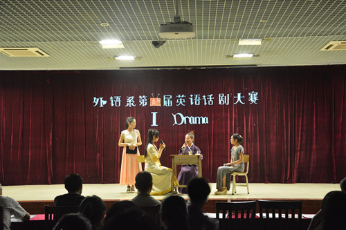 为促进校园文化多彩发展,弘扬外语系的风采,经过近一个月的排练,我系于5月29日下午2点30分在6栋学术报告大厅举办了外语系首届英语话剧大赛。本次比赛本着锻炼同学们的英语口语能力与现场表演能力为目的,受到了系领导、老师的重视和同学们的热烈反响。本次活动以“I搠爀愀洀愀”为主题,在认识自我、表现自我为观众呈现出一幕幕回味无穷的话剧。