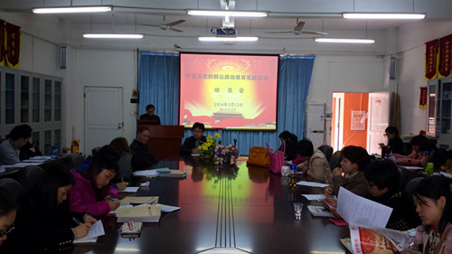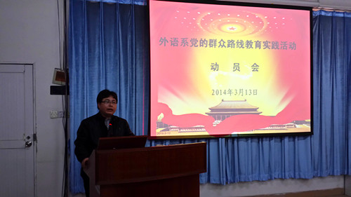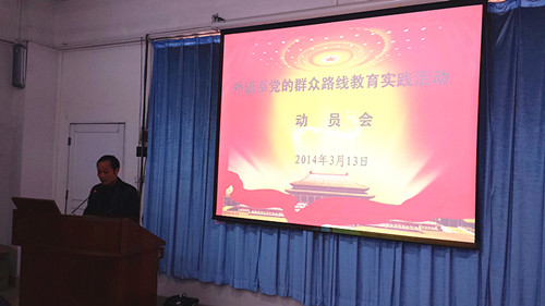 3月13日下午,外语系召开了党的群众路线教育实践活动动员大会。学院党委委员、党群工作部部长黄菲青同志应邀出席,系主任朱甫道教授主持大会。