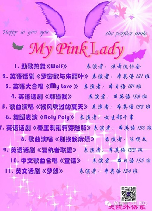 新时代女大学生是校园一道靓丽的风景线,她们青春、朝气、活泼。为发扬女生节传统和关怀我系广大女生,丰富我院在校大学生的校园文化生活。3月31日,由我系团总支·学生会承办的以“my pink lady”为主题的女生节文娱晚会在体育馆举行。出席晚会的领导有我系党总支书记谭玉清、办公室主任肖柳、团总支书记李昉和院办老师郑培佐。