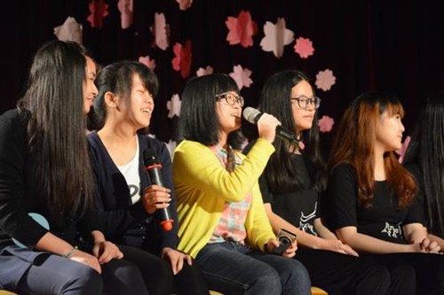 晚上7点半,炫舞流协会带来的舞蹈《wolf》拉开了晚会帷幕,节奏性的韵律和动感的舞步让在场的观众热情澎湃,掀起晚会第一轮小高潮。紧接着,舞蹈、歌曲和话剧等节目轮番上演。我系团总支·学生会女生部干事还为今晚的晚会精心准备了舞蹈《roly poly>。晚会期间,院十大歌手冠军陈扬文的歌曲串烧成为全场最大亮点,他用精湛的唱功和独特的舞台魅力把每首歌都演绎的淋漓尽致,歌曲与吉他声合二为一,把全场气氛推向高潮,尖叫声一波接一波。整场晚会历时两个小时,节目循环渐进,紧紧相扣,高潮迭起,得到场下观众热烈反应。在晚会接近尾声时,大众评审上台投票选出他们今晚最喜爱的节目。本日语131班全班整齐合唱英文歌曲《my love》,展现了她们激情洋溢,团结向上的精神,受到观众热棒,获得人气奖。其他班级则获得纪念奖。