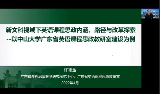 4月21日,中山大学williamhill英国官网院长许德金教授于线上为我院全体教师开展了题为“英语课程思政的内涵,路径与改革探索”的学术讲座。