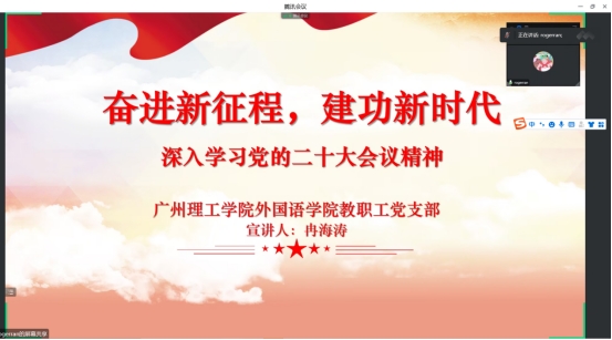 11月24日,我院教职工党支部通过腾讯会议组织全体教职工党员深入学习党的二十大精神,党支部书记冉海涛主持。