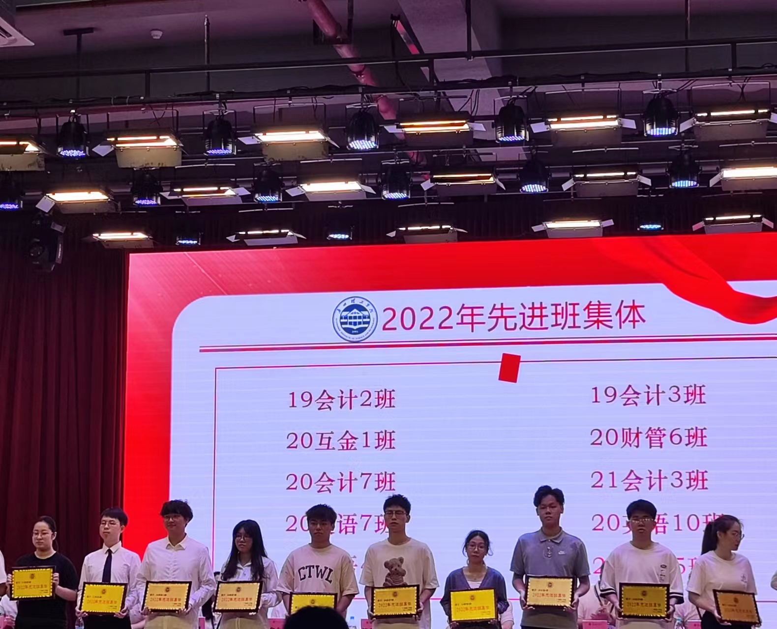 大会伊始,彭文刚书记宣读优秀班长、十佳班长、先进班集体、十佳班集体及2022年大学生十大年度人物表彰名单。其中我院获得十佳班集体荣誉称号的是20翻译班和20英语4班;获得先进班集体荣誉称号的为20英语7班、 20英语10班、21英语4班和21英语5班;获得十佳班长荣誉称号的是20翻译班蓝龙杰和20英语4班赖语丽;获得优秀班长荣誉称号的是20英语2班钱嘉宝,20英语3班王侣梅,20英语6班劳迪和20英语7班韩蕊 ,20英语10班黄诗翔和 21英语4班廖婉莹;被评为十大年度人物的为20英语3班莫晓丹。