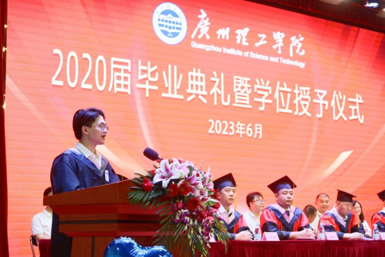 毕业典礼上,毕业生们穿着学士服,戴着学士帽,一个接一个地走上台,接过老师们手中的学位证,俯身等待拨穗,拨穗正冠,为大学的学习生活画上了圆满的句号。