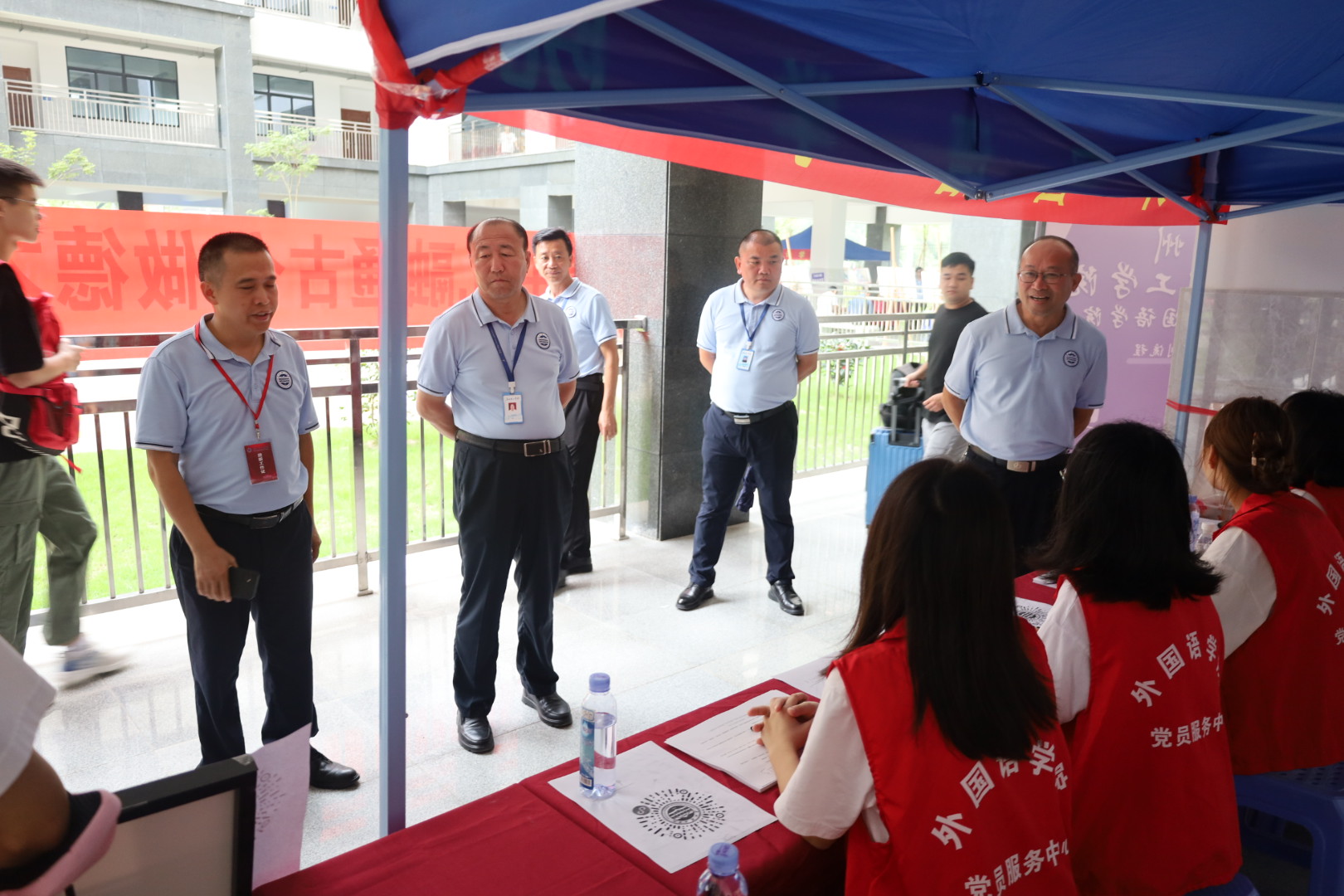 为迎接新校区23级普高新生,williamhill英国官网党总支书记冉海涛和党总支副书记蔡俊带队由教师和志愿者组成的迎新队伍于9月10日6点前往惠州校区开展迎新工作。