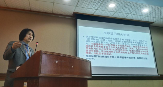在讲座中,李俄宪教授首先简要介绍了文学伦理学批判的概况。随后,李俄宪教授从日本的社会、教育及文化等多个方面论证了把文学理论学批评与日本文学研究相结合的可能性。李俄宪教授指出,文学伦理学批判作为跨学科研究的一种全新尝试,逐渐在学界得到广泛认可。紧接着,其从上代和中古时期、中世时期、近世时期以及近代时期四个维度,围绕“文学伦理学批评”的主题展开,将日本文学代表性流派和代表性作家的作品纳入文学伦理学批评实践范围,阐述了日本文学的伦理学批评之可能性。