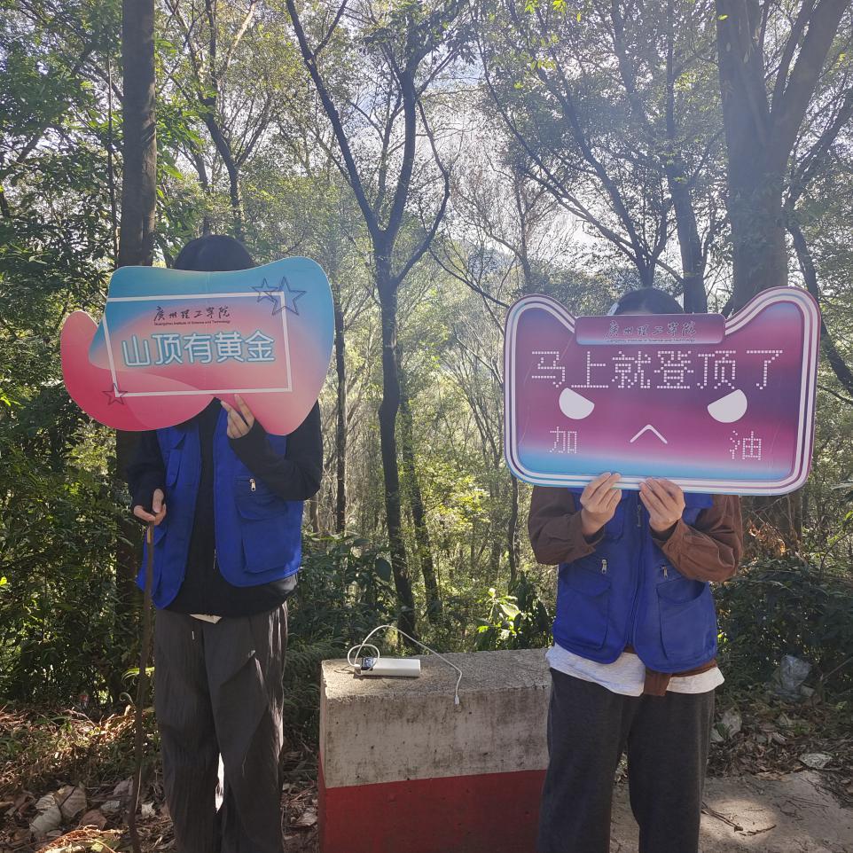 登山前,同学们进行简单的热身运动,便开始登山打卡。山上共设置五处打卡点,每组打卡点都会有相对应工作人员为登山的同学们加油打气,路上也贴着各种暖心的标语,在鼓励同学们勇登高峰的同时,也提醒大家注意安全。
