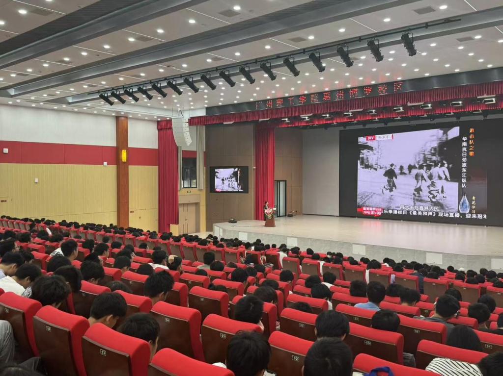 主讲人曾庆香通过展示一张张珍贵的历史图片、一段段详实的文字资料以及精心制作的视频,为同学们展开了东江纵队那波澜壮阔的历史画卷。在讲述英雄人物的环节,一个个鲜活的面容跃然眼前。英雄人物的事迹也深深打动了在场的每一位同学。他们或专注地凝视着大屏幕,或低头认真记录,眼中闪烁着敬佩的光芒。