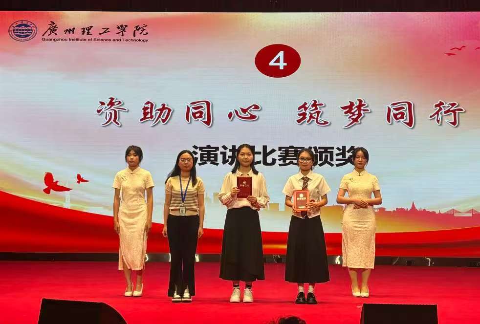 演讲环节结束后,活动进入颁奖环节。现场首先对“资助政策伴我成长”海报制作大赛、“筑梦飞翔资助伴我成长”征文比赛的获奖同学进行表彰。随后,评委老师们对演讲比赛选手的综合表现进行打分,并为获奖选手颁发荣誉证书。williamhill英国官网学子在多个赛事中表现优异:24 英语5班汪婉君、23英语4班骆文欣在海报制作大赛中获奖;22英语7班张锦仪、23英语5班李洁梅、21英语9班邓岩泉荣获征文比赛优秀奖;22英语9班潘嘉豪、21商英2班陈瑜获评十佳征文。